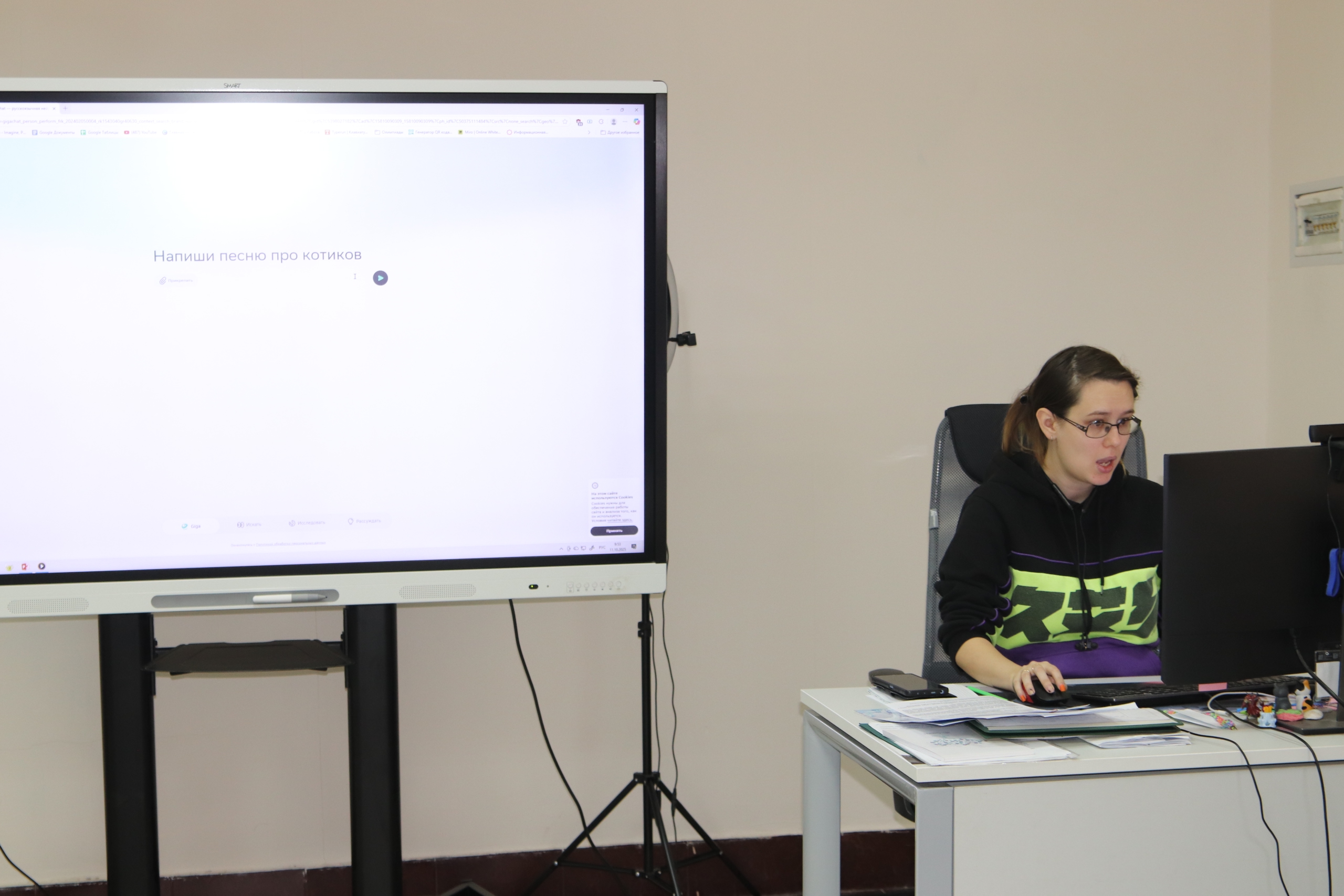 11 октября родителей пригласили на мастер-класс по нейросетям. Многие школьники уже сейчас очень часто обращаются к ним за помощью, а вот родители не все ещё знают, что искусственный интеллект – это большая помощь и поддержка в современном мире. Наставник ИТ-квантума Вера Кутыгина в доступной и интересной форме рассказала и показала, как и где стоит использовать возможности ИИ, а где надо бы этим пренебречь.