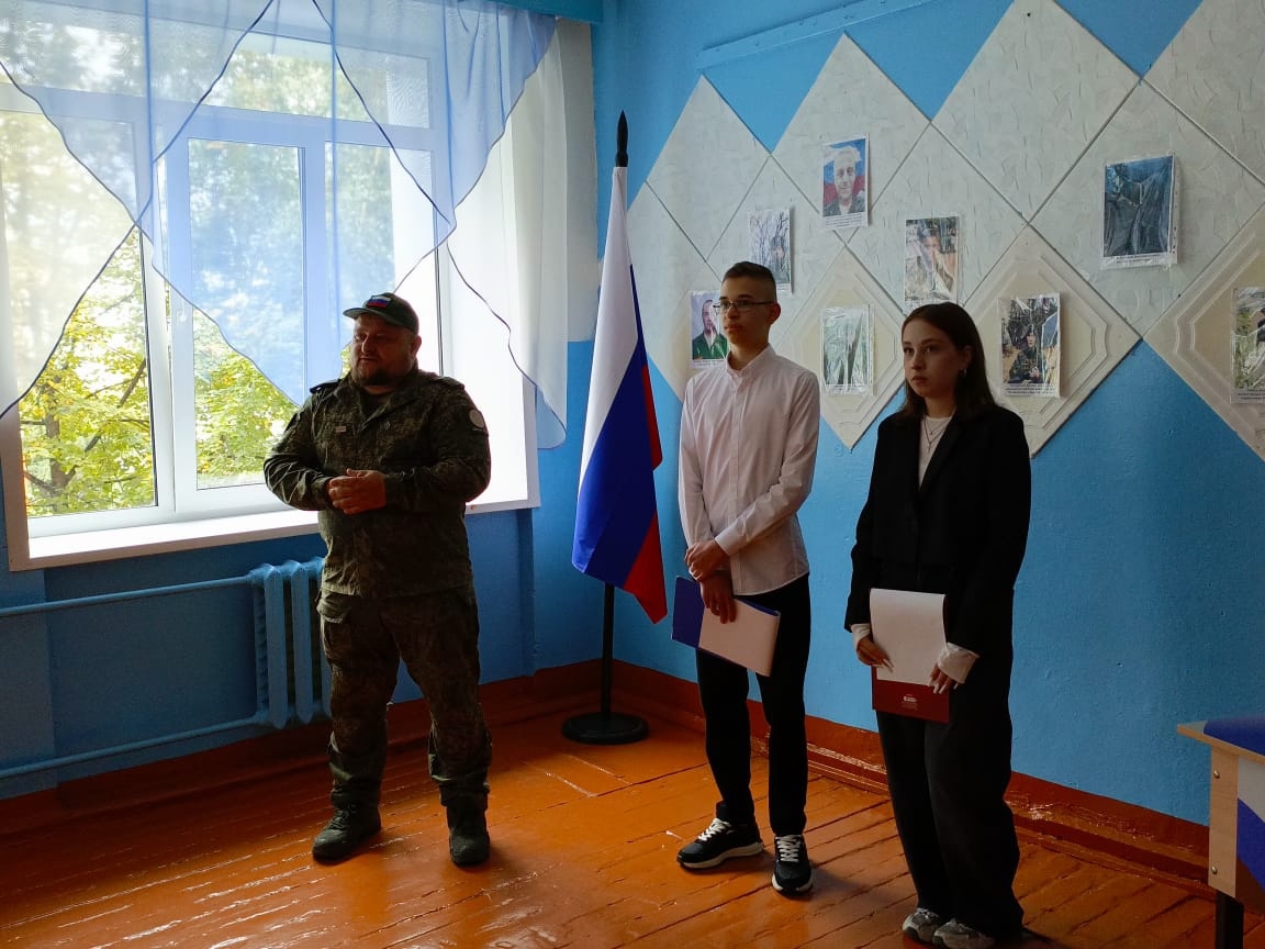 Педагог-организатор Регионального центра патриотического воспитания ЦРСК, ветеран боевых действий и участник СВО Александр Пылков побывал в СОШ №48 города Кургана, где состоялось торжественное открытие «Парты Героя».