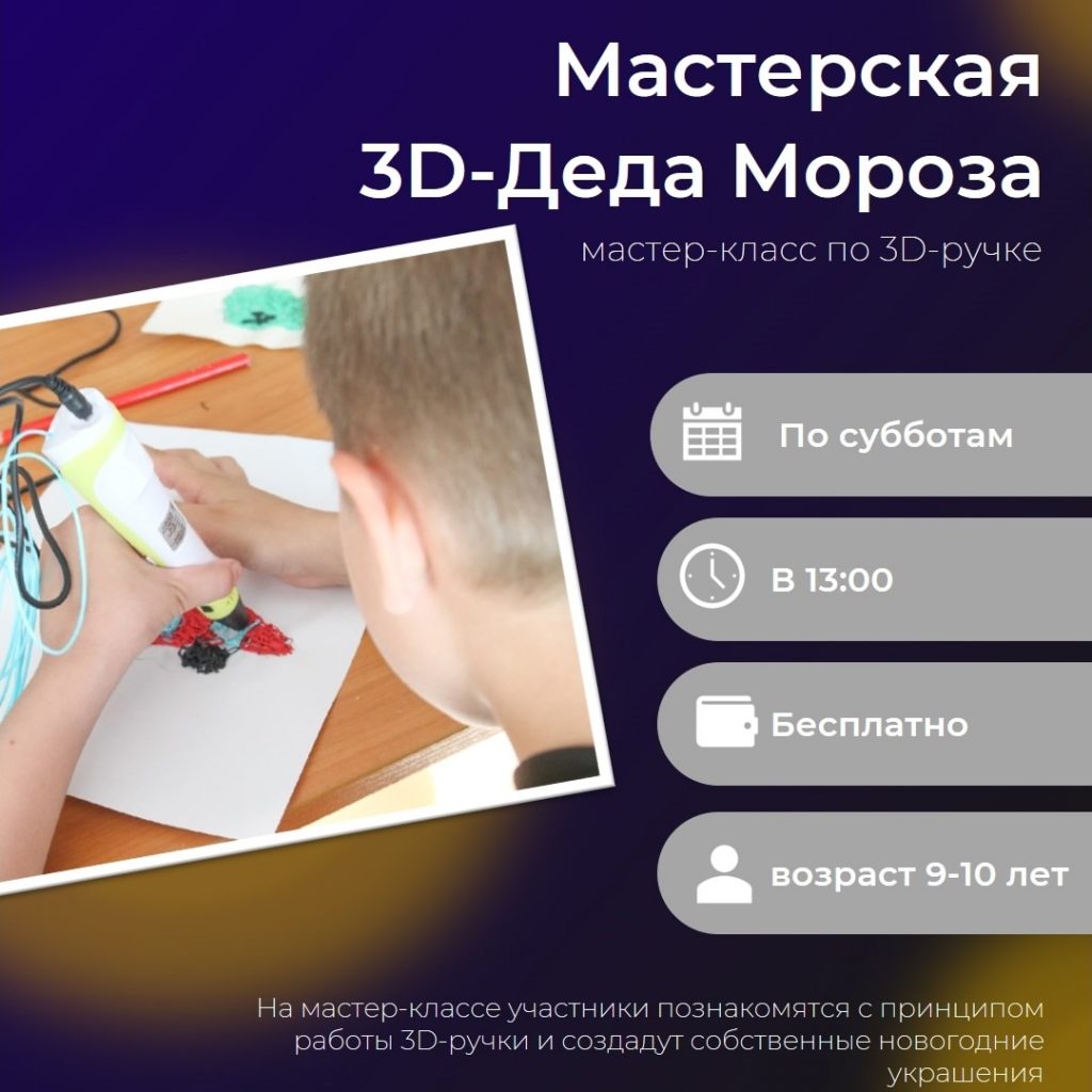 “Вас ждёт увлекательное путешествие в мир объёмного рисования! Вы узнаете всё о работе с 3D-ручкой и сделаете уникальные украшения, которыми захочется украсить весь дом. Интересно? Тогда следите за новостями, запись на первый мастер-класс откроется уже 3 ноября!”, – рассказали в кванториуме.