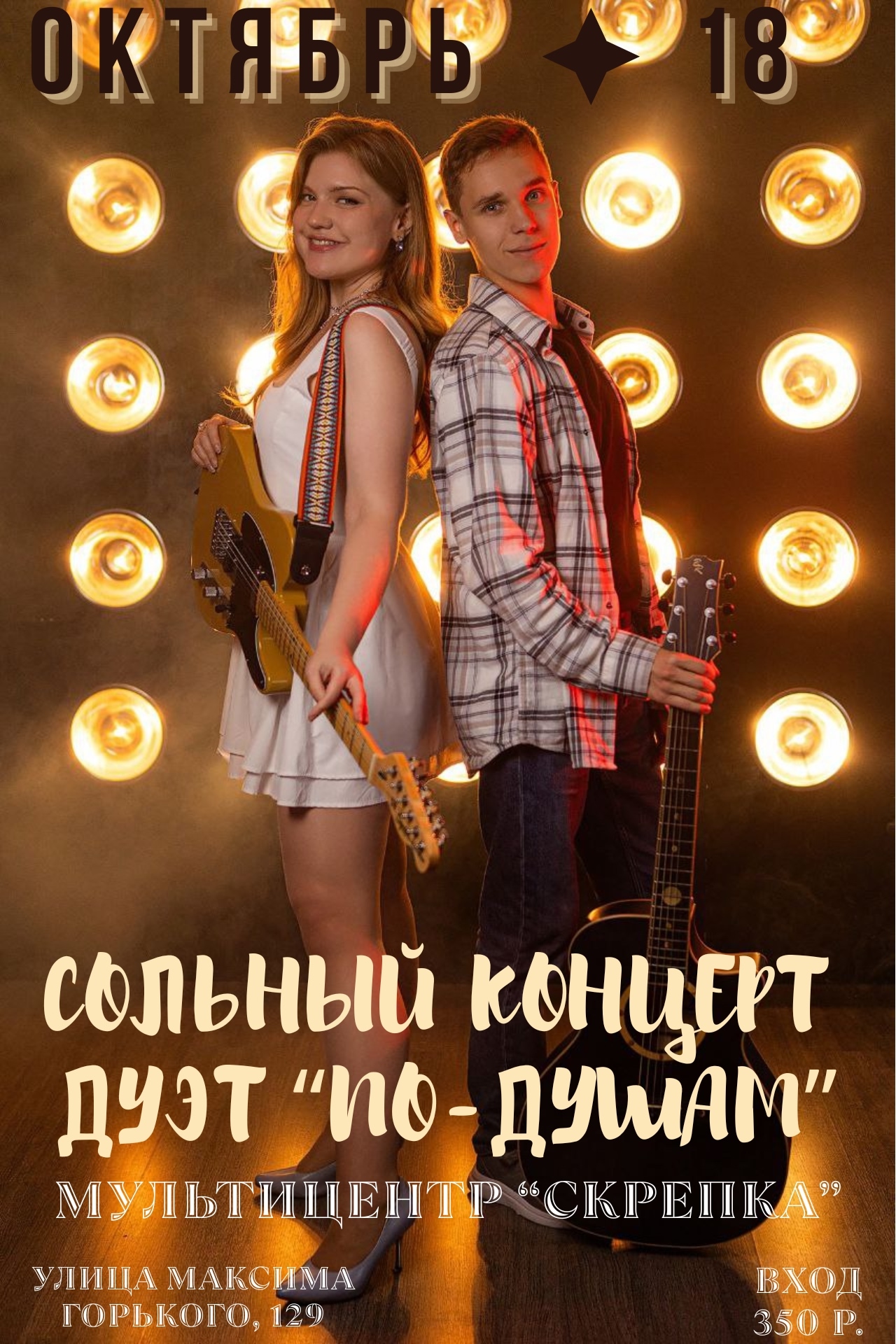 18 октября в мультицентре «Скрепка» выступит молодой дуэт «По-душам» со своим сольным концертом. Начало в 18 часов.