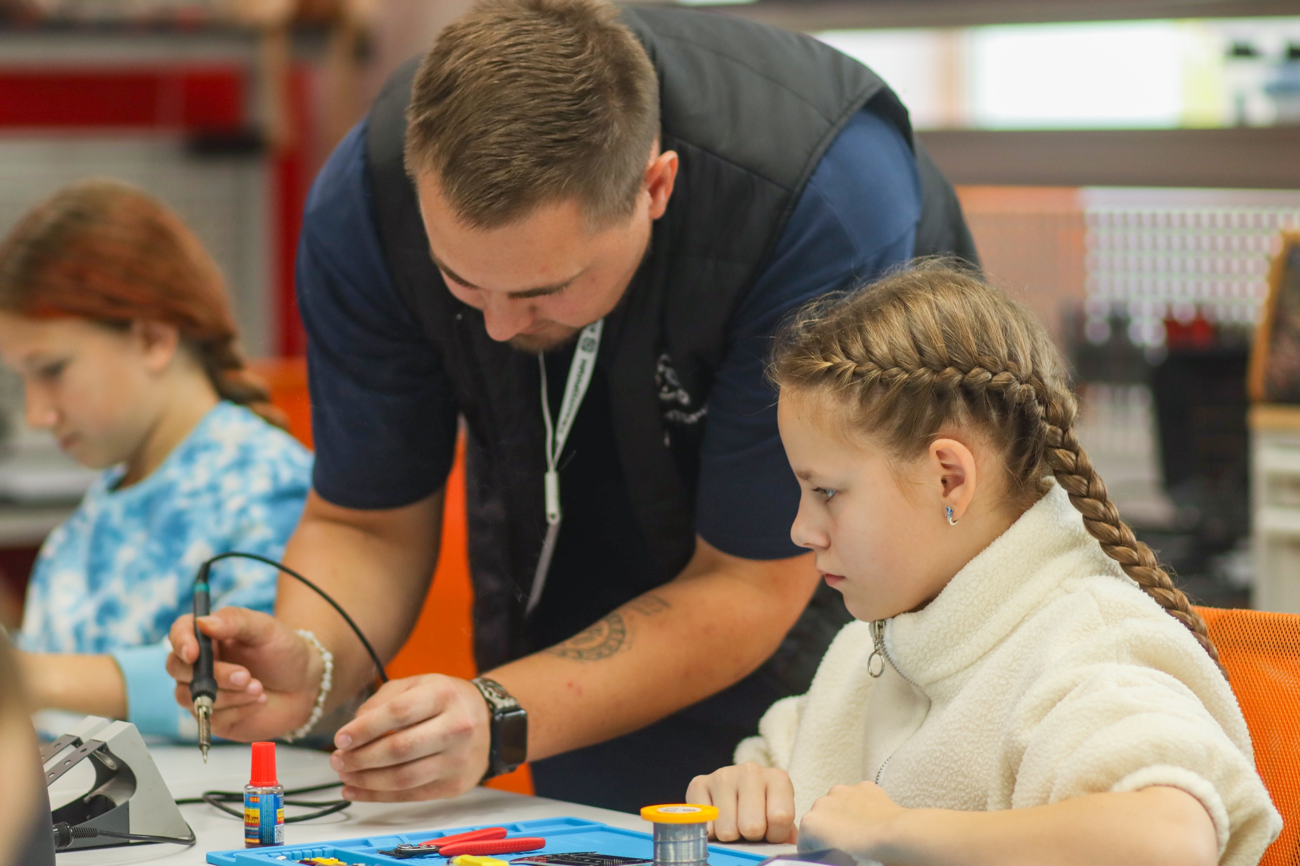 Каждый из пришедших участников смог попробовать свои силы в пайке, полётах на авиасимуляторе, работе с 3D-ручкой, в проверке воды на pH, прохождении видеоигры, работе на лазерном гравере. А после — погружение в профессии: мини-лекции и мастер-классы от педагогов-экспертов, где теория сразу же становилась практикой.